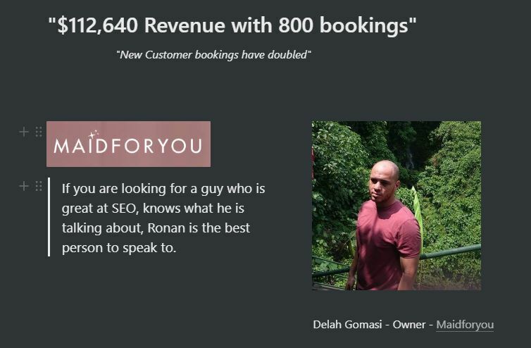 SEO Consulting Call$200$200https://schema.org/InStockusdRonan Kelleher1 ratingI will answer all of your SEO questionsI want this!1 Hour of Local SEO ConsultingAdd to wishlist New wishlistCopy product URLRatings5.0(1 rating)15.05 stars100%4 stars0%3 stars0%2 stars0%1 star0%